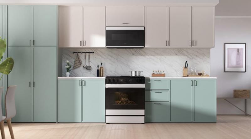 Give your kitchen a new look. This oven features a stylish and contemporary Bespoke design that will enhance the look of your kitchen or add an elegant colour accent. The range's recessed handle design seamlessly blends into your kitchen for a minimalist look.
