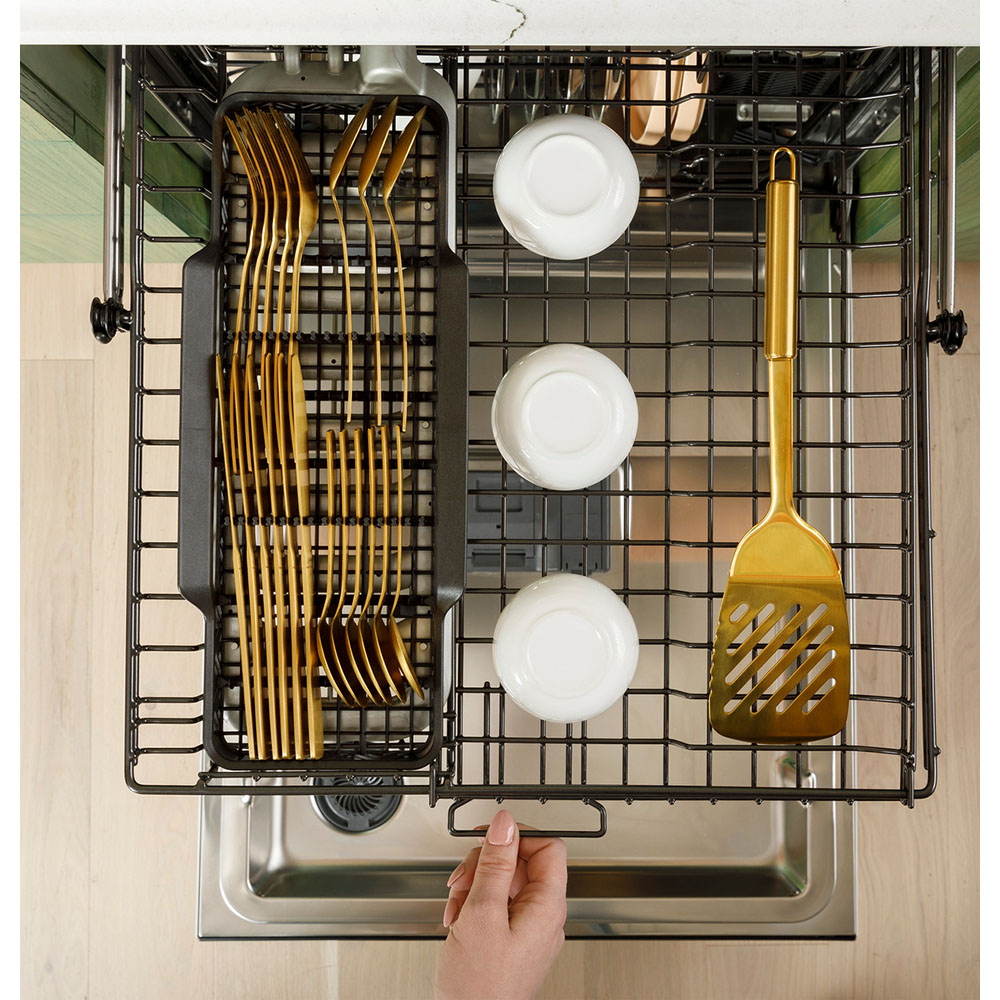 Load more than just silverware in this flexible basket with dedicated wash jets below. The CustomFit Basket holds all your silverware, stemware, and reusable straws, so items that were hand wash before can safely be washed in the dishwasher.