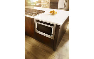 Give your kitchen more room for creativity with an ingenious top-loading microwave oven drawer that installs in your wall or island, saving you valuable countertop space for food preparation. Opening and closing the drawer are one-touch simple. Sensor cooking functions deliver precise control. 950 watt cooking power and 1.2 cu. ft. capacity handle a variety of foods with ease.