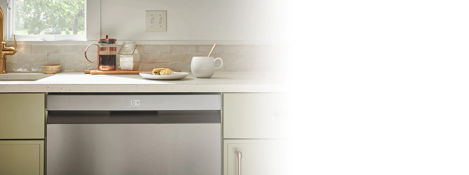 Conveniently manage your time with a hidden LED display that counts down the remaining cycle time. When the dishwasher is not in use, the display disappears for a sleek look.