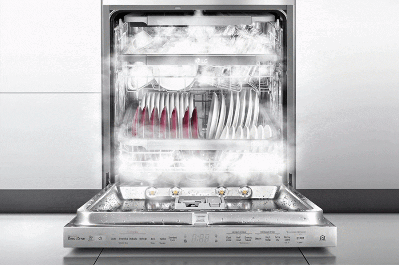 LG’s TrueSteam® technology offers an exclusive on-door 4 steam jet design for maximum steam coverage. That means less water spots and impressive, sparkling clean dishes.