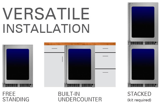 Argon-filled, UV-resistant tinted dual pane glass door protects wine from damaging ultra-violet light, while conserving energy