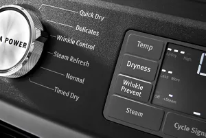 The Wrinkle Control cycle uses lower temperatures and defaults to using the Wrinkle Prevent option to help minimize wrinkles.
