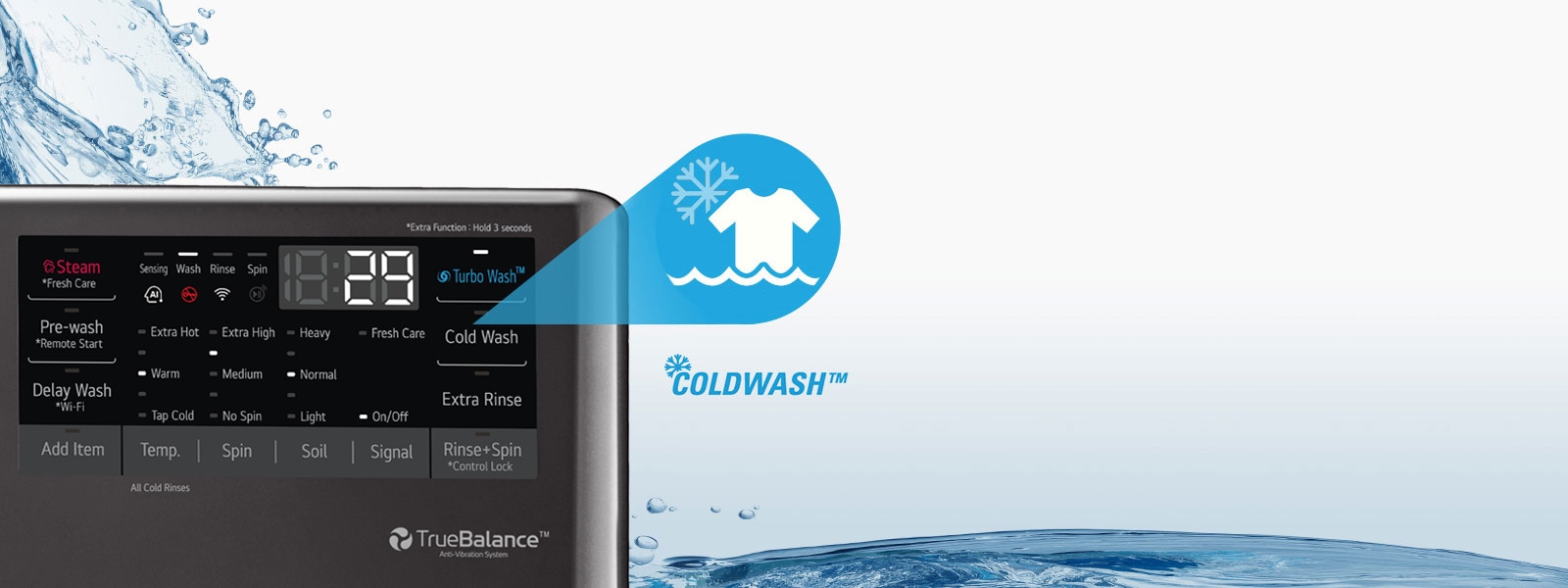 ColdWash technology penetrates deep into fabrics, for cold water savings with warm water performance.