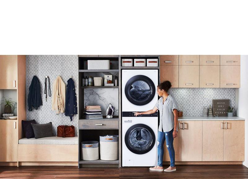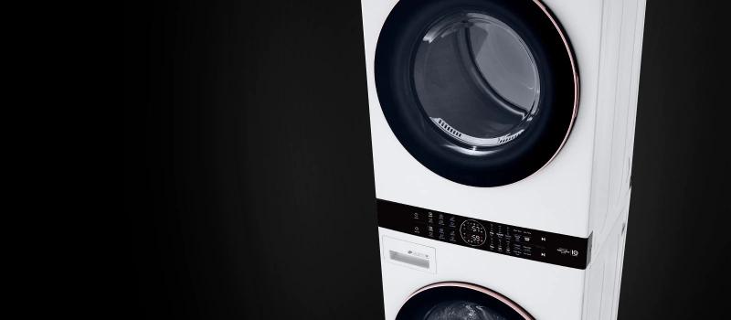 The sleek single unit LG AI WashTower™ has full-size capacity and full-size features in half the space*. Unlike conventional stacked pairs, LG’s exclusive Centre Control™ panel is perfectly positioned with both washer and dryer controls at just the right height.