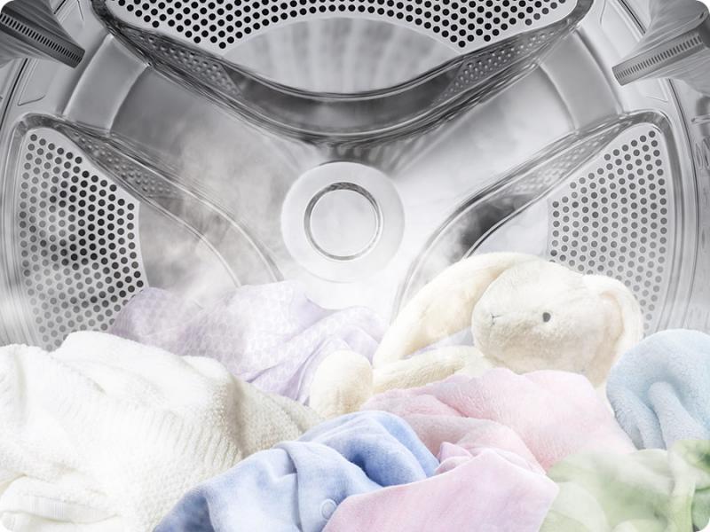 The power of steam gently removes stains without time-consuming pretreatments. Steam is released from the drum so every item in the load is thoroughly saturated, ensuring a deep clean.