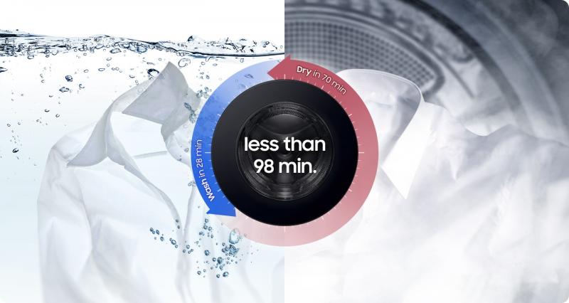 * Among W/D Combo with heat pump dryers, based on a 10 lb DOE load. wash. ** Based on using a Super Speed cycle only with an 10 lb DOE load (cotton 50% + polyester 50%). Individual results may vary based on actual load content.