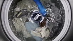 The built-in water faucet rinses, spot treats or soaks clothes right in the washer—no extra steps needed. After three hours, the water drains, leaving clothes ready for the wash cycle.