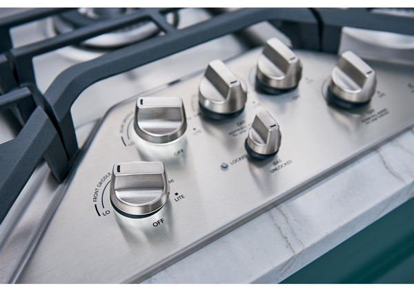 Sears and sautés are handled with ease on a 20,000 BTU Tri-Ring Burner, while the Extra-Large, Integrated cooktop Griddle offers up the perfect space for crab cakes and veggies. White LED Backlit Heavy Duty Knobs add a spark to your kitchen. Offering a large cooking surface with five sealed burners, including a convenient simmer burner, this versatile cooktop makes creating any size or type of meal easy.