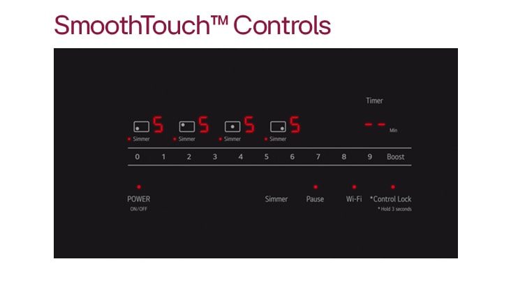 Easy to use with just a touch. At a quick glance of the centralized electronic controls users can see which heating element is activated and the smooth surface easily wipes clean.