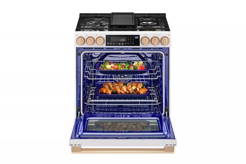 LG STUDIO ProBake Convection® ranges offer the best in convection technology for even baking results on every rack, every time. Inspired by pro-style ranges, this LG STUDIO range has the heating element on the back wall for optimal heat distribution. Enjoy consistent browning on top and bottom, with every cookie baked to perfection.