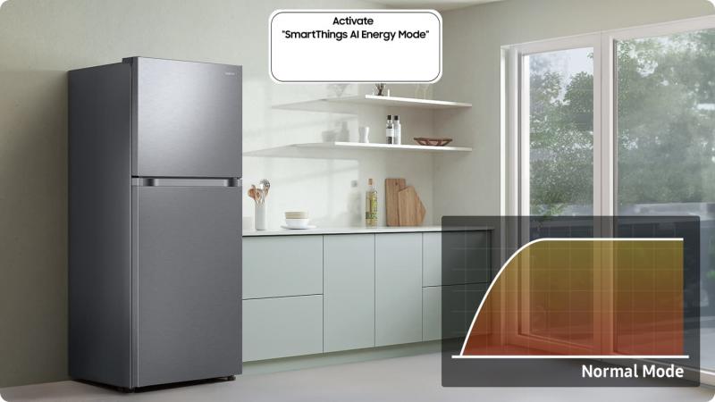 Monitor your energy consumption with AI Energy mode in SmartThings Energy. If your estimated monthly electricity bill exceeds your preset target, it gives you an option to save energy. It optimizes the compressor speed and defrost cycle, based on your usage pattern and surroundings.