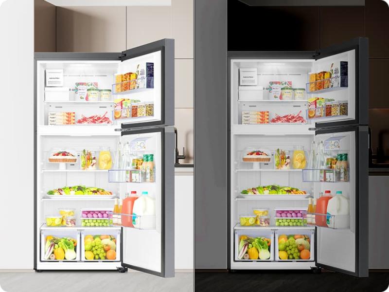 Avoid straining your eyes by the glare of the internal fridge light. Gentle Lighting on the SmartThings App* lets you set the brightness of the fridge's internal lighting. Using Dimming mode will turn the light on gradually, while the automatic Night Shift mode will adjust the brightness based on surrounding light levels.