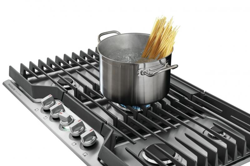 Moving heavy pots and pans across the cooktop is easier with continuous edge-to-edge grates.