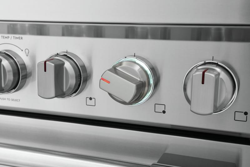 Backlit LED knobs light up when the cooktop is in use.