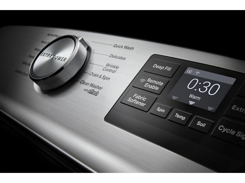 Get the heavy duty washing machine that delivers powerful cleaning you can depend on with the Power™ agitator. The Extra Power button boosts stain fighting on any wash cycle with a dual-temperature wash, including the Quick Wash cycle, while the Deep Fill option delivers more water when you want it with your choice of deeper water levels.* Plus, smart washer features help you stay in control and efficiently manage laundry from anywhere.** Use the Maytag™ app to remotely start or stop your appliance, get end of cycle notifications and troubleshoot select issues.