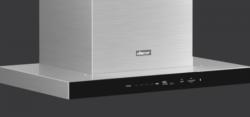 Smart functionality enables hood to automatically turn on in conjunction with a compatible Dacor cooking product.