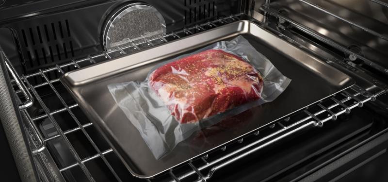 Vacuum-packed low temperature cooking enables moist, smooth cooking without losing moisture.