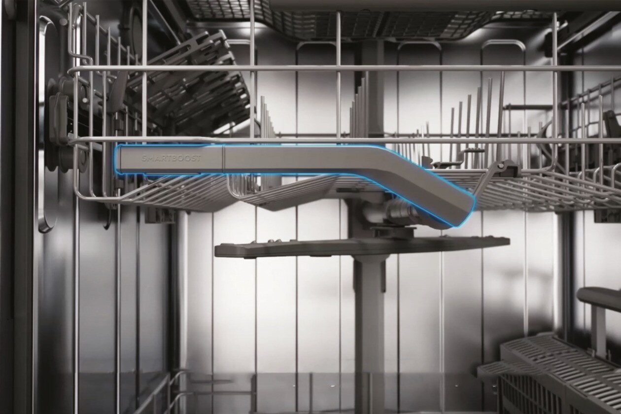 Our patented SmartBoostTM Clean technology effectively premixes your detergent with water before reaching your dishes, delivering powerful cleaning results and helping remove tough baked on foods