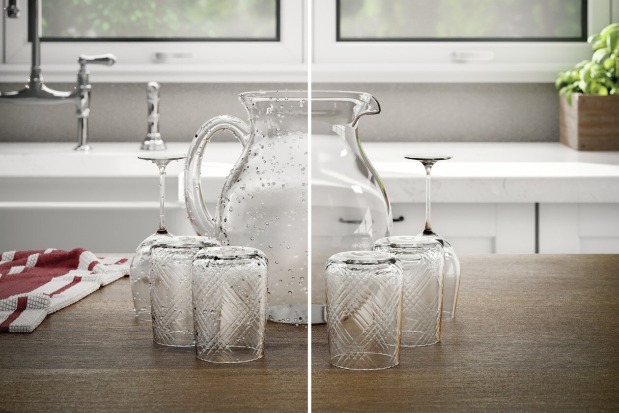 Completely clean dishes of all shapes and sizes like water bottles, casserole dishes wine glasses and more with our Target Wash Zones