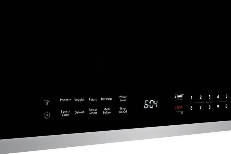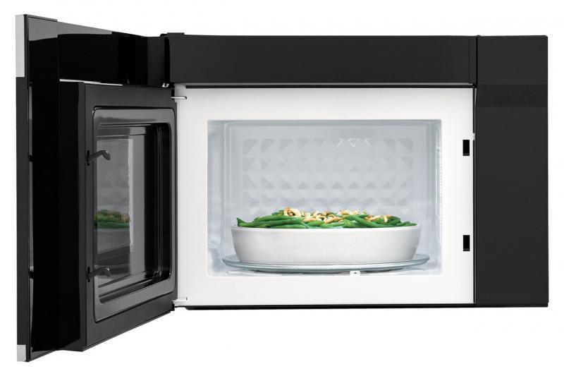 Over-the-range microwave doubles as a hood offering ventilation with two fan speeds.