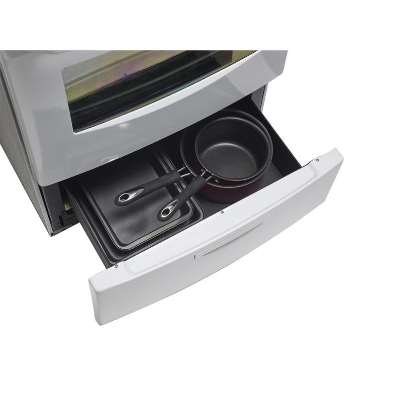 Save cupboard space by storing pots and pans inside this sleek space saver built right into your range.