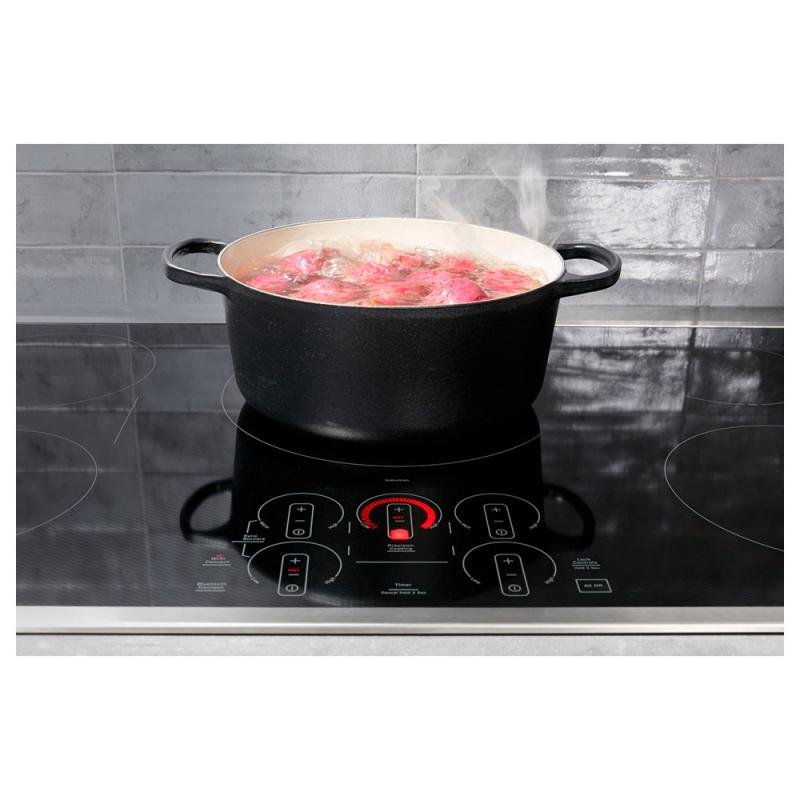 This smart cooktop features Built-in WiFi so you can monitor your burners and view power levels, precision temperature , or on/off.