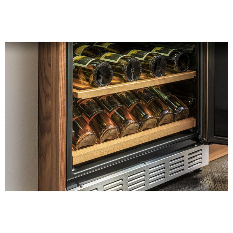 This shelf can be angled to give you the option to store wine bottles on their side or display them with labels for easy selection