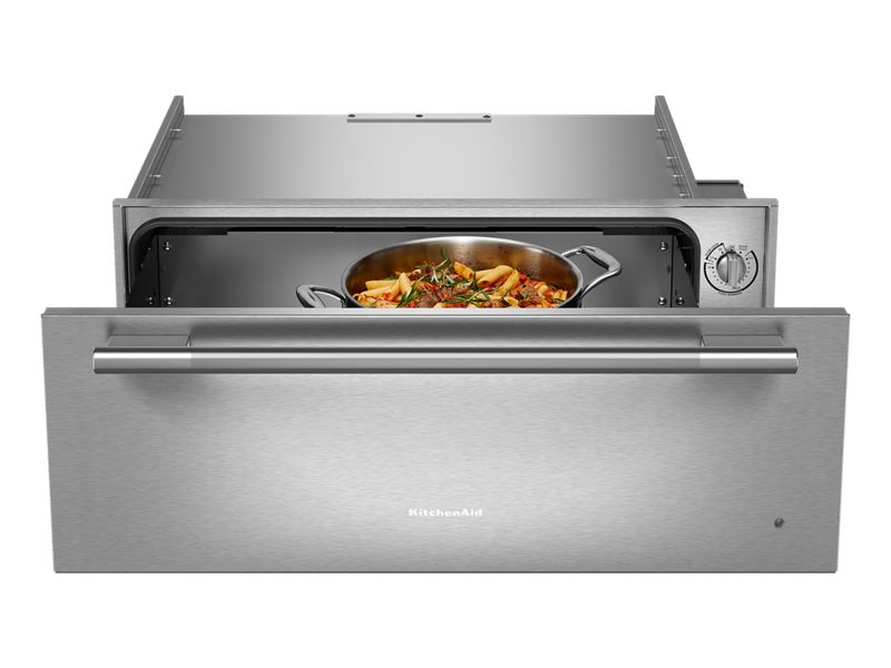 uses a thermostat to monitor the heat inside the warming drawer and automatically adjusts as needed to help prevent food from drying out.