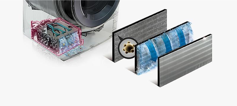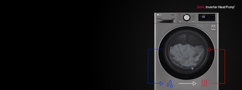 *When compared with comparable dryer using condenser heating technology, based on Intertek testing in normal cycle, 8.45 lb. load, comparing Heat Pump Dryer DLHC1455V vs. Condenser Heater Dryer DLEC888W (January 2021).