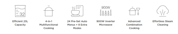 Microwave Output 900W, Air Fry 1500W, Steam 1500W, Bake 1500W