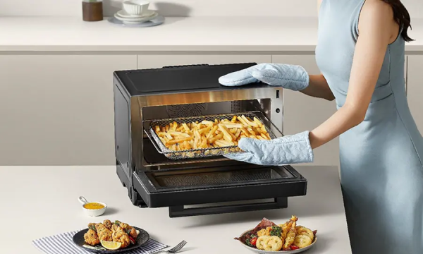 Save time and space with a versatile 4-in-1 appliance that microwaves, steams, bake and air fries, all in one device.