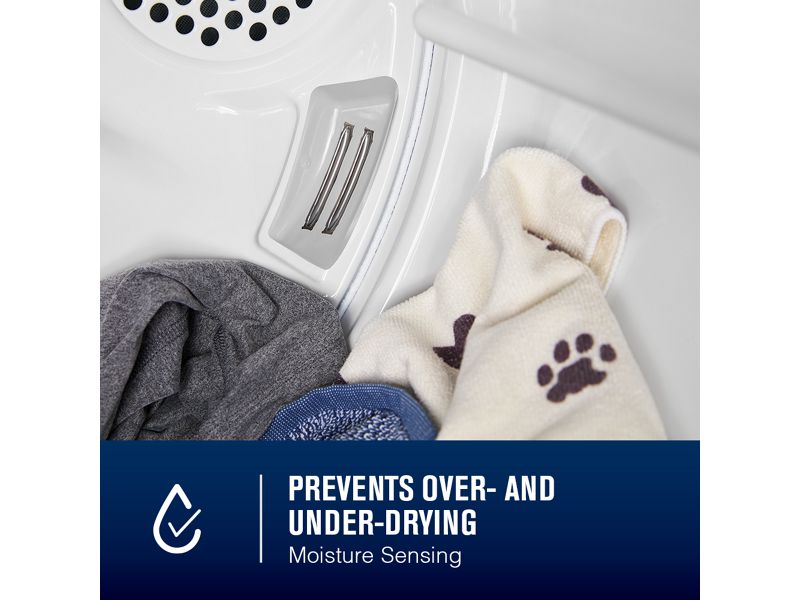Two sensors closely monitor inside moisture and air temperatures to deliver the right results for each load. When fabrics are evenly dry and air reaches ideal temperatures, the cycle stops, helping prevent over- and under-drying.