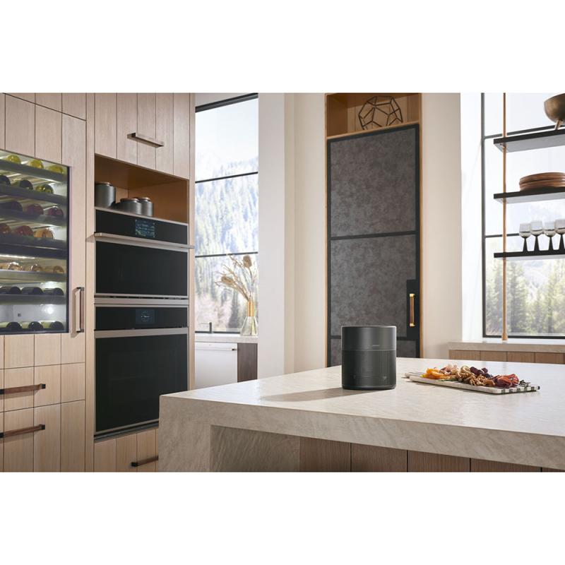Sleek handle-less design now benefits from the convenience of voice control. Once programmed, you can use your voice to open the oven door, preheat the oven and more, all without raising a finger