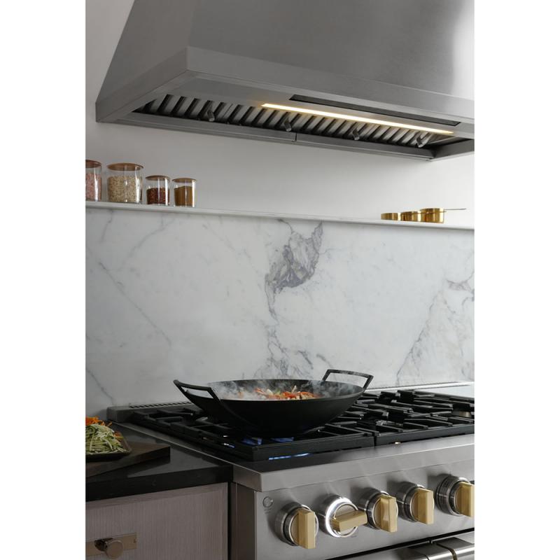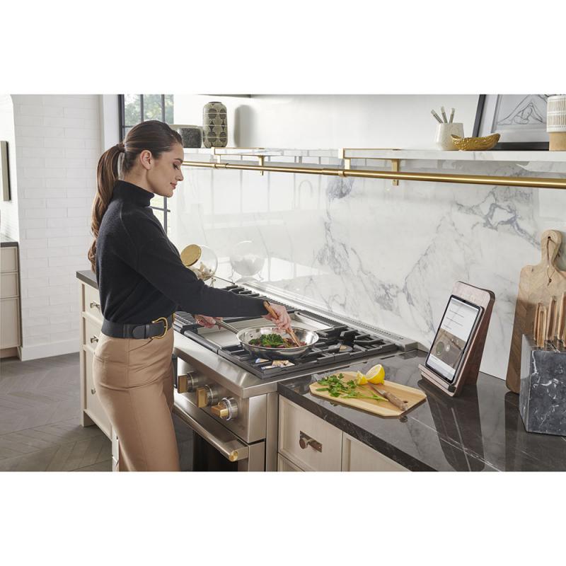 Delivering exceptional cooking flexibility, the 21,000 and 23,000-BTU multi-ring brass burners and dual-stack burners offer a range of heat settings, from gentle simmer to intense flame