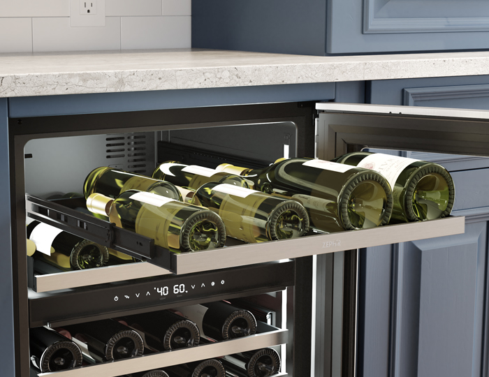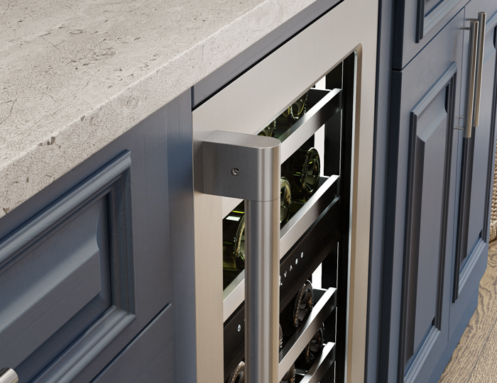 From bubbly to Barolo, store every precious bottle at just the right temperature, the way the pros do it. With the help of the quietest inverter compressor on the market, an easily removable kickplate, soft-close glides on wood racks, improved rack spacing, a magnum-ready top shelf and as much sleek, professional quality design as any kitchen desire, youre ready to serve guests in style. And its good looks fit right in with your other pro-style appliances.