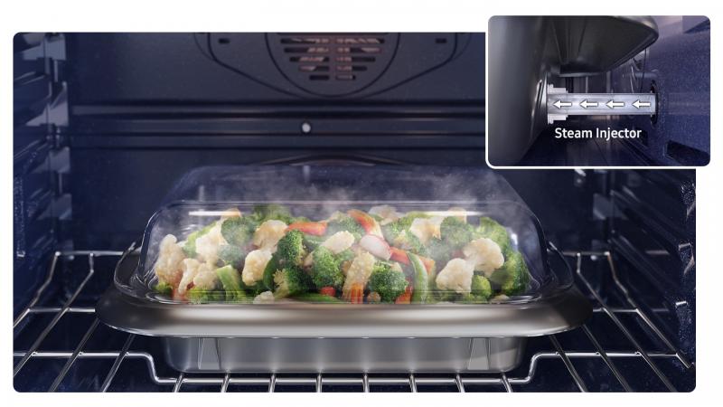 An easy-fill water tray lets you bake, broil, and roast with added steam, which can help you to cook foods that are moist and flavourful.