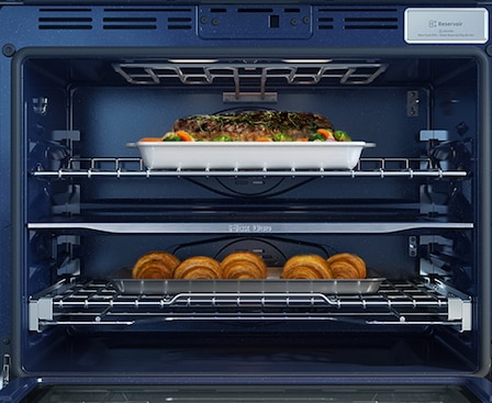 An easy-fill water tray lets you bake, broil, and roast with added steam, resulting in foods that are moist and flavorful.