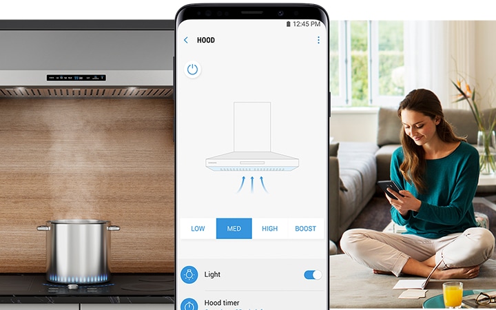 Automatically syncs the fan and the lights with the burners through Bluetooth. Auto Connectivity* aligns the hood and cooktop's status so you can control the hood using the one-touch control of the cooktop, instantly turning them both ‘On' or ‘Off', for the ultimate in cooking convenience.