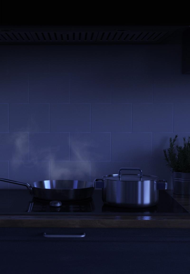 Automatically syncs the fan and the lights with the burners through Bluetooth. Auto Connectivity* aligns the hood and cooktop’s status so you can control the hood using the one-touch control of the cooktop, instantly turning them both ‘On’ or ‘Off’, for the ultimate in cooking convenience.