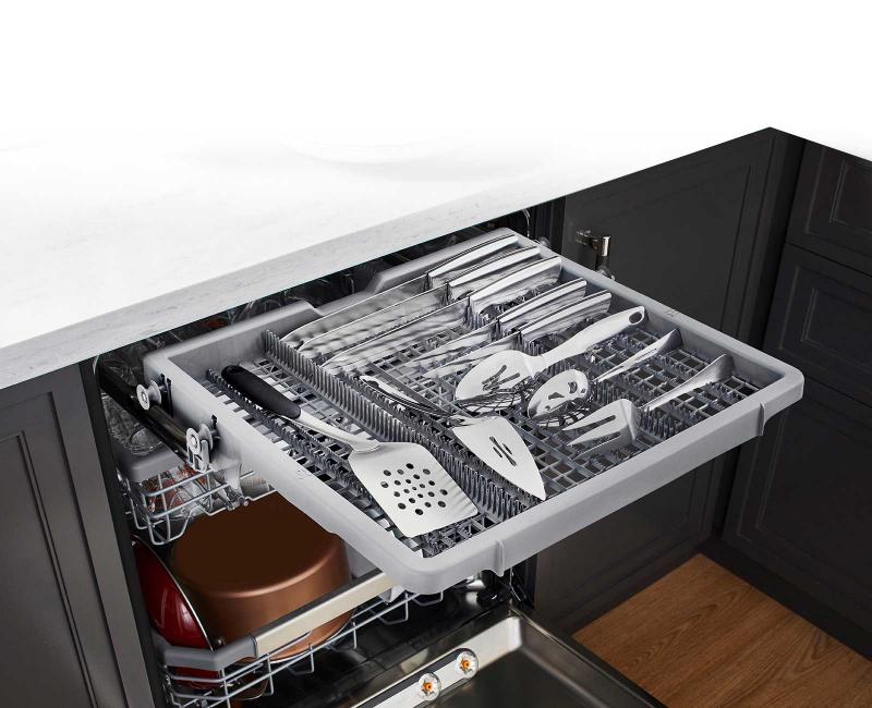 The 3rd rack gives you more space to fit everything from long flatware to oversized cooking utensils including spatulas, spoons, tongs and more.