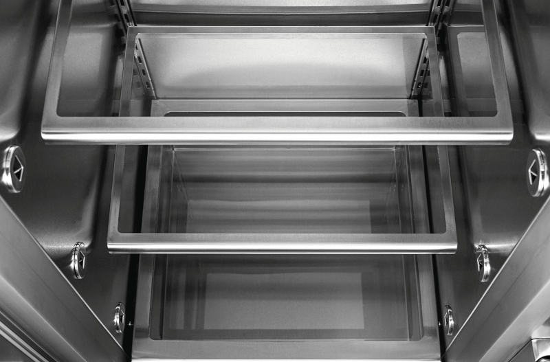 When it comes to preparation and storage, professional chefs understand the necessity of flexibility and control. We addressed those needs by designing stainless steel, encapsulated glass shelves that are both adjustable and removable.