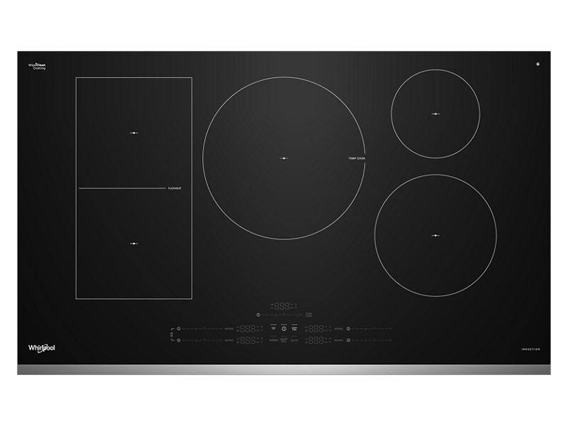 The Whirlpool Intelligent Induction Cooktop helps you stay on time of meal time even with life's interuptions. Temp Cook™ Technology helps you avoid burning with dual temperature sensors that monitor and maintain your heat. Smart Presets like simmer, saute, and more put favorites at your fingertip and the Flexheat™ Plus Element matches your heat to your pan size. Voice Control allows you to do so hands-free with Alexa™ or Google™ when connected and WipeClean™ Coating simplifies cleanup so you can wet, wait, and wipe away the mess after meals.
