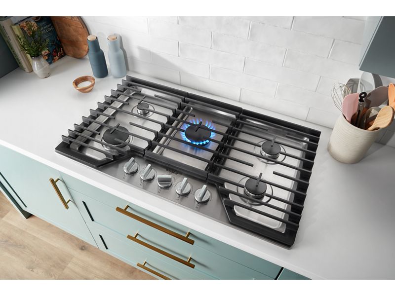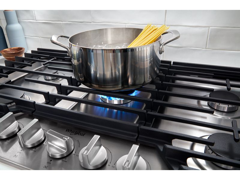 36" Whirlpool Gas Cooktop with EZ-2-Lift Hinged Cast-Iron Grates - WCGK5036PB