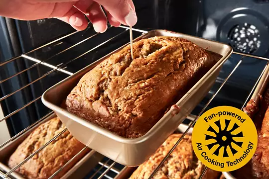 Go from gooey to golden and get even results when baking on multiple racks with Air Baking. Our high-speed fan optimizes air flow and drives consistent heat throughout the oven. Get golden results on breads, pastries and more.