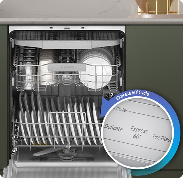 Free up your time by getting dishes clean and dry much faster with the Express 60' cycle. It is ideal for smaller loads of lightly soiled items that don’t need really intensive cleaning, such as cups, cutlery and dinner plates. It does a complete washing and drying cycle within just 60 minutes.