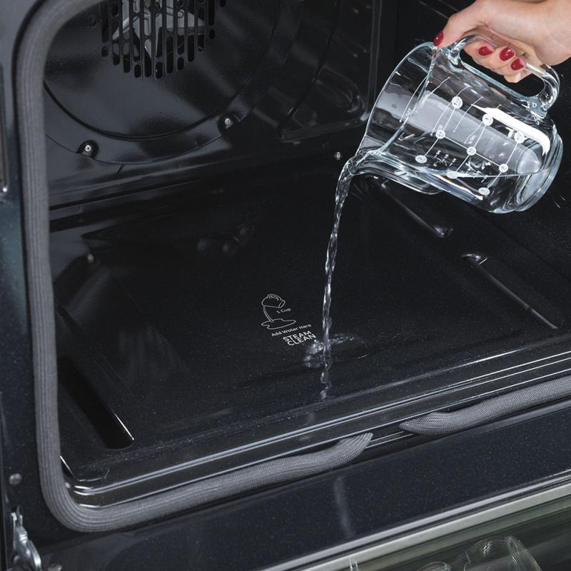 The power of steam eliminates oven scrubbing and tough food leftovers with a 30-minute Steam Clean Cycle.