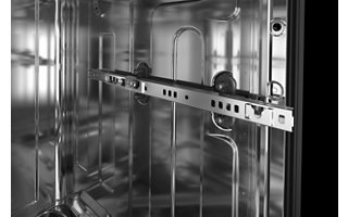 Premium rails with ball-bearing glides allow racks to move effortlessly, even when fully loaded.