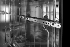 Premium rails with ball-bearing glides allow racks to move effortlessly, even when fully loaded.