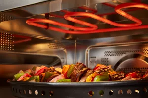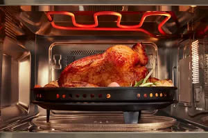 Helps maintain the balanced heat distribution required for exceptional roasting by alternating traditional microwave cooking with convection cooking to surround food with heat.